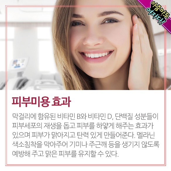 막걸리에는 항산화 물질이 함유되어 있어 피부 건강을 개선하는 데 효과적입니다. 항산화 물질은 노화를 방지하고 피부 탄력을 유지하는 데 도움을 줍니다.