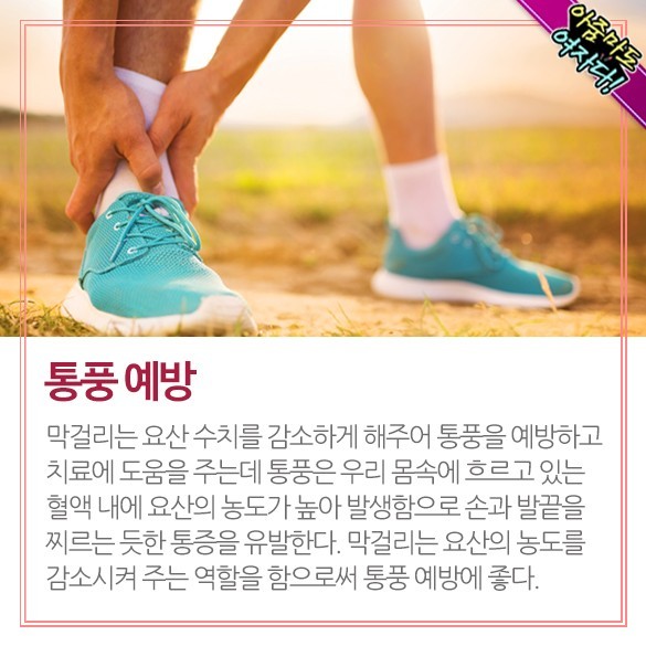 막걸리는 단백질과 필수 아미노산이 포함되어 있어 근육 생성과 유지, 면역력 강화에 도움이 됩니다.